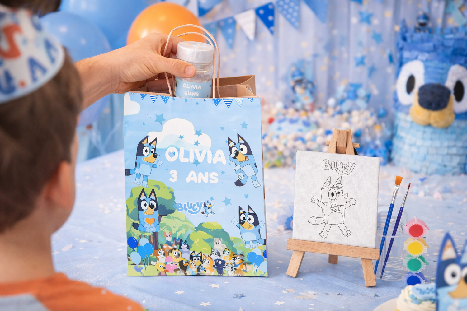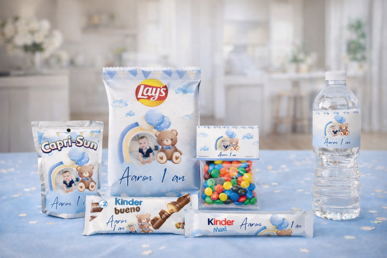 Chaque élément est décoré selon le thème choisi, avec un prénom et l'âge pour créer une table ou un cadeau qui correspond parfaitement à votre occasion.